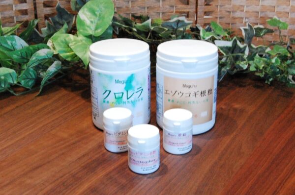 クロレラは、体に必要とされる必須栄養素すべてを含む水の中で育つ健康食品。エゾウコギ根粒は、極寒のなか台地の土で育つ健康食品。水と台地この二つは各々相性が良くお互いがお互いを助ける位置にあります。ここへ現代日本人が不足しがちであろう栄養素をサプリメントで補いました。